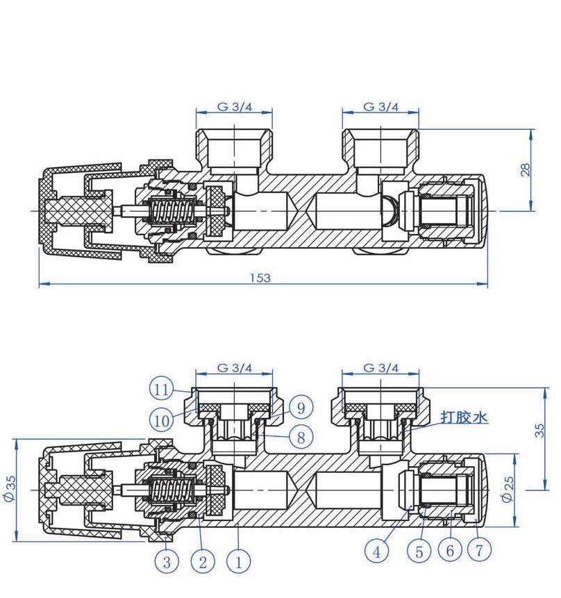 Riko thermostatisch 3/4 onderblok haaks-rechts geborsteld staal