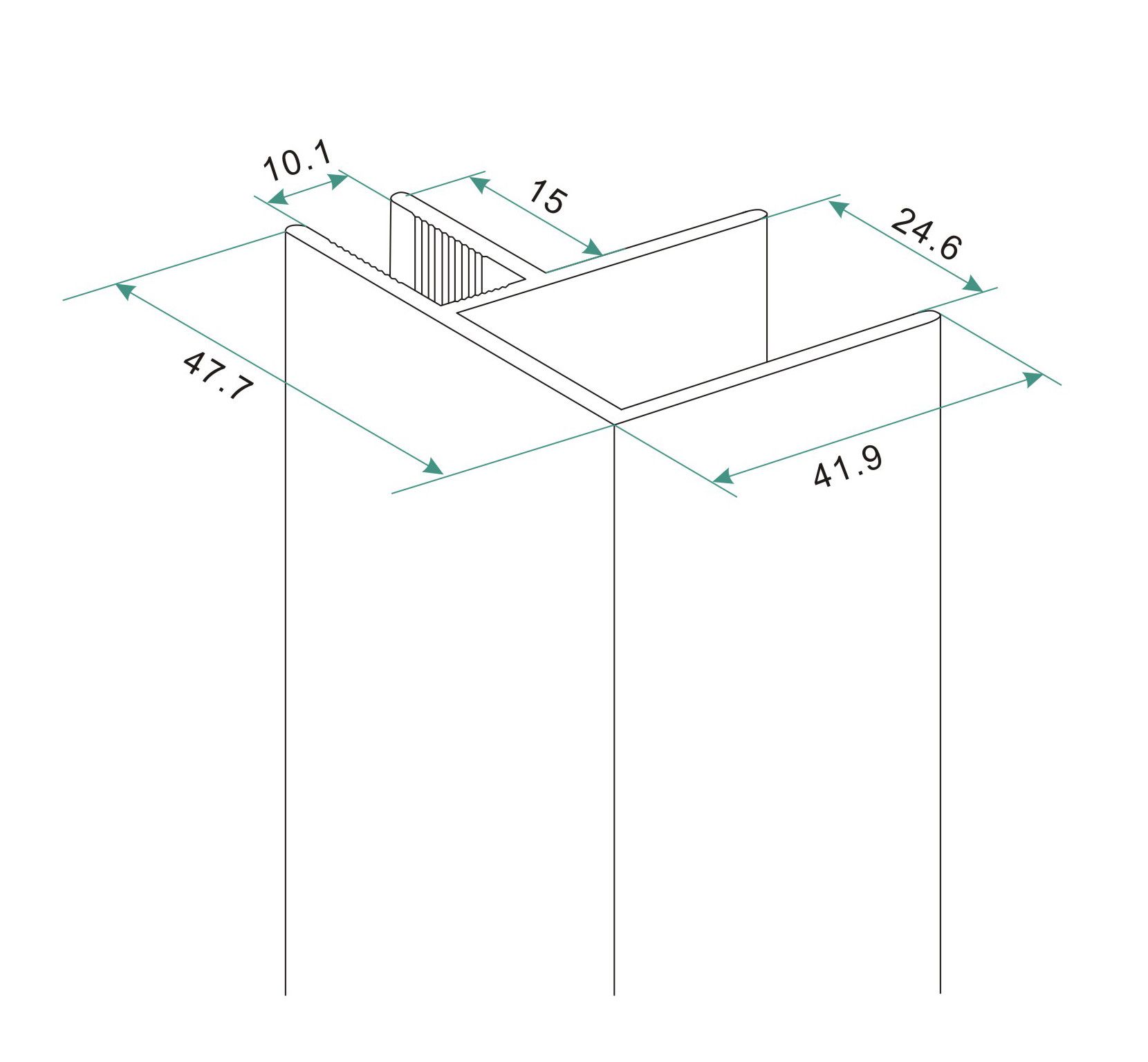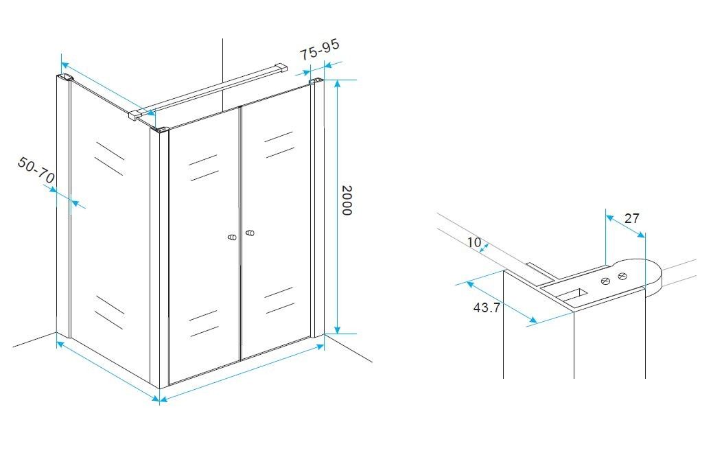 Hoekprofiel tbv nisdeur+profiel met zijwand 10mm