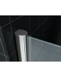 Nisdeur met profiel 1000x2000 8mm. NANO glas. Verstelbaar van 98 - 102cm. Links- en rechtscharnierend. Deur voorzien van liftsysteem naar binnen- of naar buiten scharnierend (kan niet beide) 8mm veiligheidglas met. NANO (anti-kalk) coating. Aluminium profielen metalen knoppen, verchroomd. Magneetsluiting. NANO-coating: Op microscopisch niveau ziet de wereld er heel anders uit. In het geval van glas is er dan te zien dat een product gemaakt van glas heel veel kleine open poriAn heeft. Door deze poriAn kunnen vuil en kalk zich snel hechten. Door met (machinale) rollers. NANO-coating aan te brengen worden deze poriAn adichtgesmeerda en hechten vuil en kalk zich veel minder snel aan het glasoppervlak. NANO-coating zorgt er dus voor dat het product langer schoon blijft en kalk en vuil zich minder snel hechten. Onderhoudsarm dus. LET OP: Zodra je deze nisdeur combineert met een zijwand komt het aanslagprofiel van 50 tot 70 mm te vervallen.