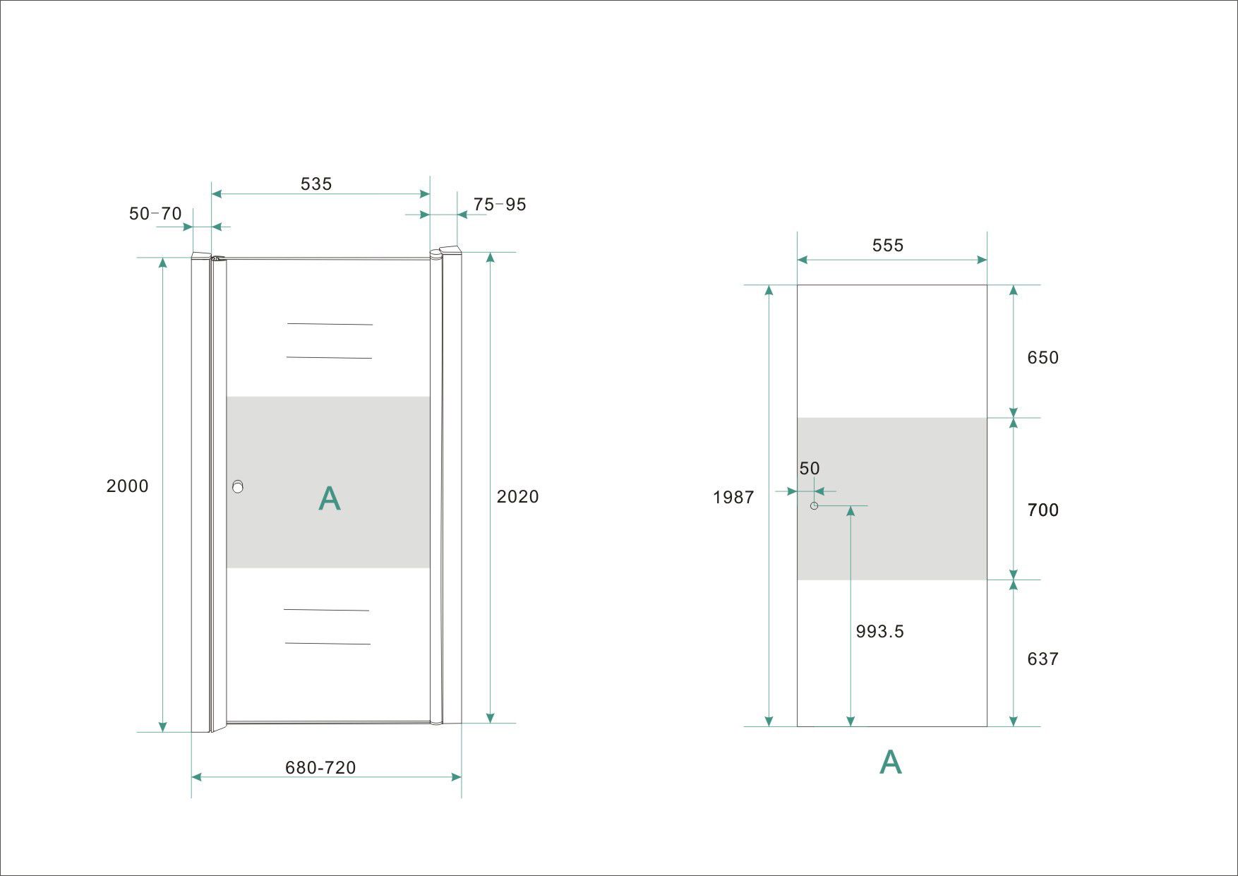 Nisdeur met profiel 700x2000 8mm. NANO. Met gedeeltelijk matglas (1/3) Verstelbaar van 68 - 72cm. Rechts scharnierend naar binnen- of naar buiten scharnierend (kan niet beide) Deur voorzien van liftsysteem 8mm veiligheidglas met. NANO (anti-kalk) coating. Aluminium profielen metalen knoppen, verchroomd. Magneetsluiting. NANO-coating: Op microscopisch niveau ziet de wereld er heel anders uit. In het geval van glas is er dan te zien dat een product gemaakt van glas heel veel kleine open poriAn heeft. Door deze poriAn kunnen vuil en kalk zich snel hechten. Door met (machinale) rollers. NANO-coating aan te brengen worden deze poriAn adichtgesmeerda en hechten vuil en kalk zich veel minder snel aan het glasoppervlak. NANO-coating zorgt er dus voor dat het product langer schoon blijft en kalk en vuil zich minder snel hechten. Onderhoudsarm dus. LET OP: Zodra je deze nisdeur combineert met een zijwand komt het aanslagprofiel van 50 tot 70 mm te vervallen.