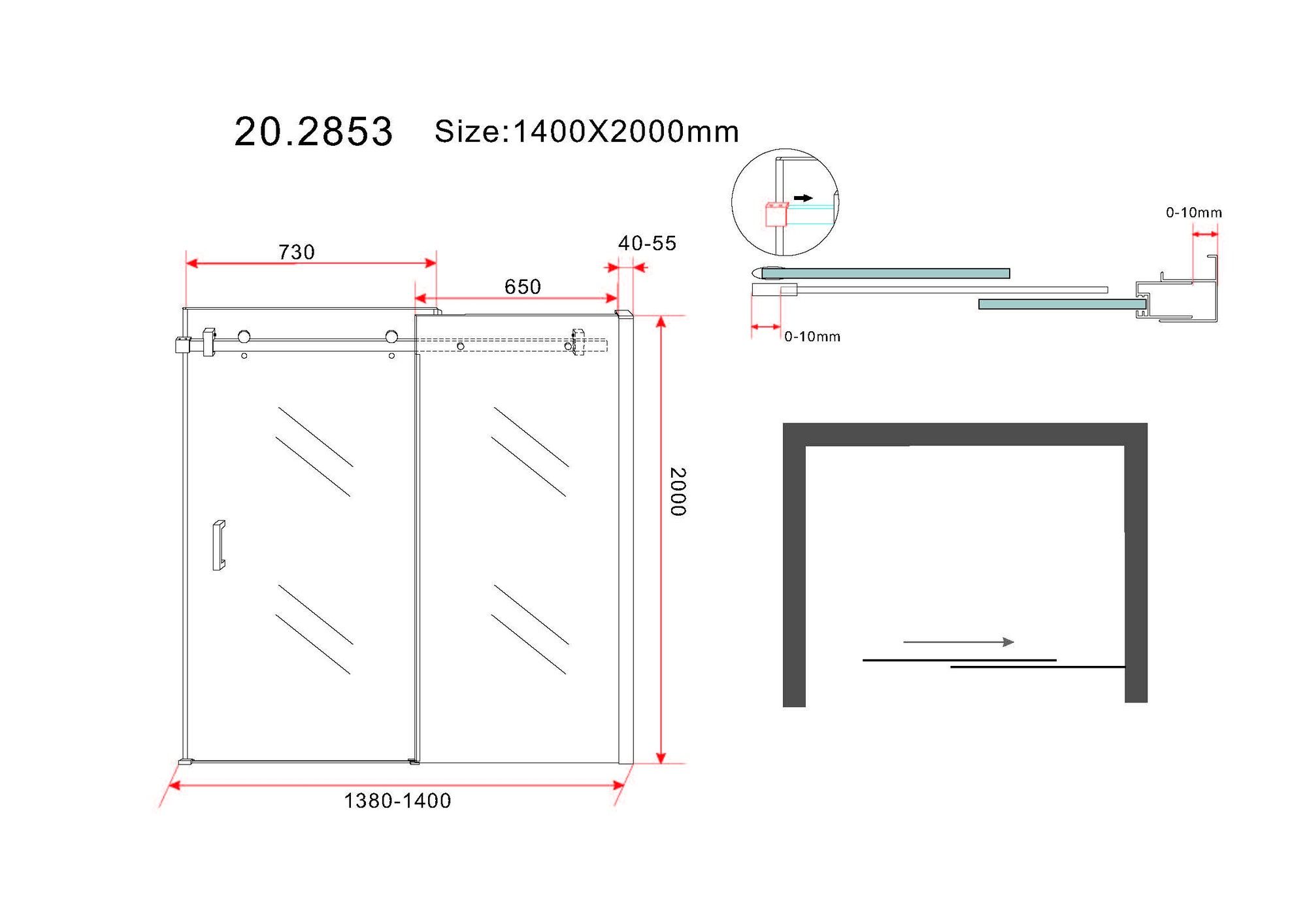 Schuifbare nisdeur 2-d. Mat-zwart 1400x2000 chr.8mm. NANO Verstelbaarheid: 138 - 139,5 cm. NANO-coating: Op microscopisch niveau ziet de wereld er heel anders uit. In het geval van glas is er dan te zien dat een product gemaakt van glas heel veel kleine open poriAn heeft. Door deze poriAn kunnen vuil en kalk zich snel hechten. Door met (machinale) rollers. NANO-coating aan te brengen worden deze poriAn adichtgesmeerda en hechten vuil en kalk zich veel minder snel aan het glasoppervlak. NANO-coating zorgt er dus voor dat het product langer schoon blijft en kalk en vuil zich minder snel hechten. Onderhoudsarm dus.