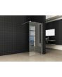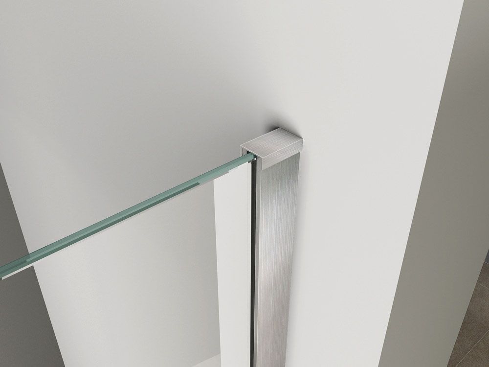 Inloopdouche + RVS profiel 900x2000 10mm. NANO glas inclusief stabilisatiestang van 100cm. Omkeerbaar. Kleur profielen en stang: geborsteld rvs. NANO-coating: Op microscopisch niveau ziet de wereld er heel anders uit. In het geval van glas is er dan te zien dat een product gemaakt van glas heel veel kleine open poriAn heeft. Door deze poriAn kunnen vuil en kalk zich snel hechten. Door met (machinale) rollers. NANO-coating aan te brengen worden deze poriAn adichtgesmeerda en hechten vuil en kalk zich veel minder snel aan het glasoppervlak. NANO-coating zorgt er dus voor dat het product langer schoon blijft en kalk en vuil zich minder snel hechten. Onderhoudsarm dus.