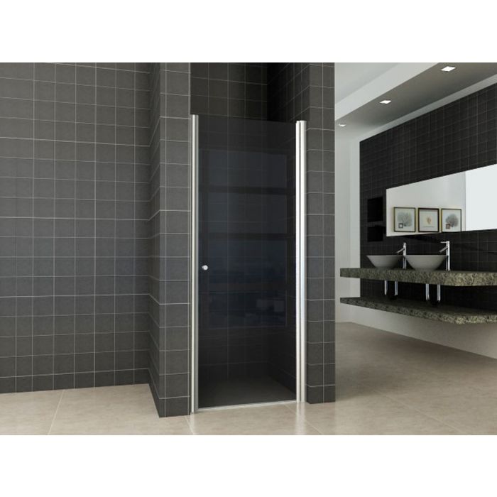 Nisdeur met profiel 800x2000 8mm. NANO glas. Verstelbaar van 79 - 81cm. Links- en rechts-scharnierend naar binnen- of naar buiten scharnierend (kan niet beiden) Deur voorzien van liftsysteem 8mm veiligheidglas met. NANO (anti-kalk) coating. Uitvoering: rookglas. Aluminium profielen metalen knoppen, verchroomd. Magneetsluiting. NANO-coating: Op microscopisch niveau ziet de wereld er heel anders uit. In het geval van glas is er dan te zien dat een product gemaakt van glas heel veel kleine open poriAn heeft. Door deze poriAn kunnen vuil en kalk zich snel hechten. Door met (machinale) rollers. NANO-coating aan te brengen worden deze poriAn adichtgesmeerda en hechten vuil en kalk zich veel minder snel aan het glasoppervlak. NANO-coating zorgt er dus voor dat het product langer schoon blijft en kalk en vuil zich minder snel hechten. Onderhoudsarm dus.